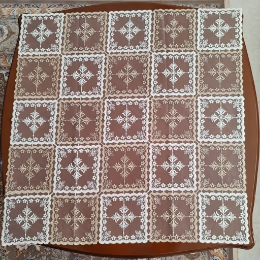 رومیزی مربع یا روپشتی 80*80 سانتی حریر گیپور مدل برگی جدید