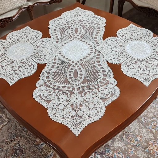 رومیزی جدید سه تکه مخمل دانتل بیضی و دو تا مربع طرح گوشواره ای