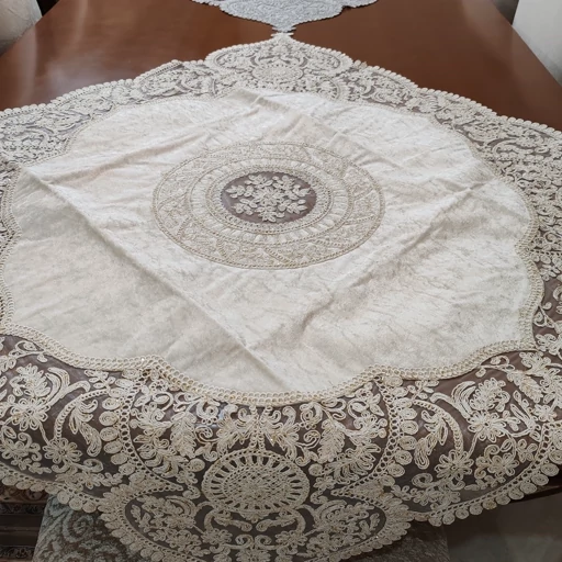 رومیزی تک مربع مخمل دانتل طرح ترک کیمیا 90*90 سانت