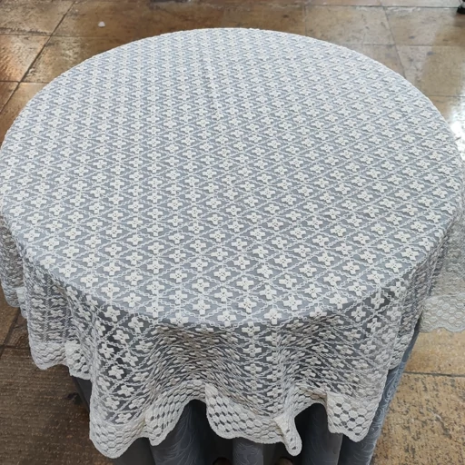 رومیزی گرد تور دانتل پرده ای با حاشیه دوزی