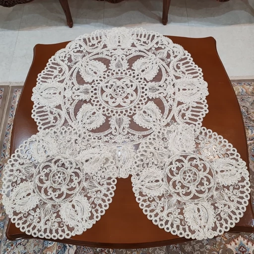 رومیزی گرد دانتل ترک اصل مدل الگانت جدید قیطون دوزی شاین دار سه تکه شامل
