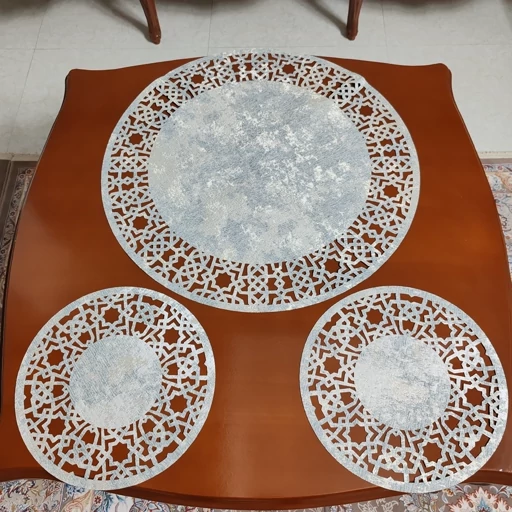 رومیزی گرد مخمل پتینه سه تکه دو لایه با آستر پاناما