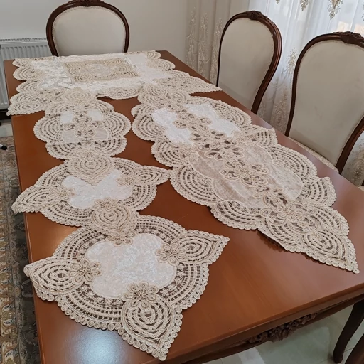 سرویس رومیزی و رانر پنج تکه مخمل دانتل ترک طرح درسا شامل