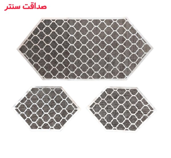 ابعاد رومیزی ۳ تکه:رانر متوسط جهت استفاده روی جلو مبلی ۸۵x۴۴ سانتی متر و رانر کوچک جهت استفاده روی میز عسلی ۴۴x۲۸ سانتی متر می باشد.دارای انواع رنگبندی می باشد.